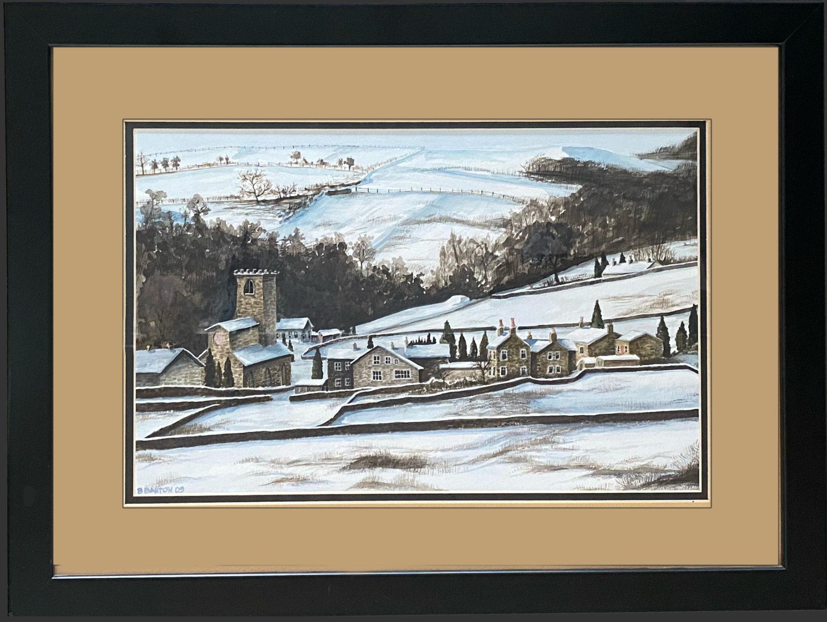This 23” X 18” framed depiction of a typical English winter scene.