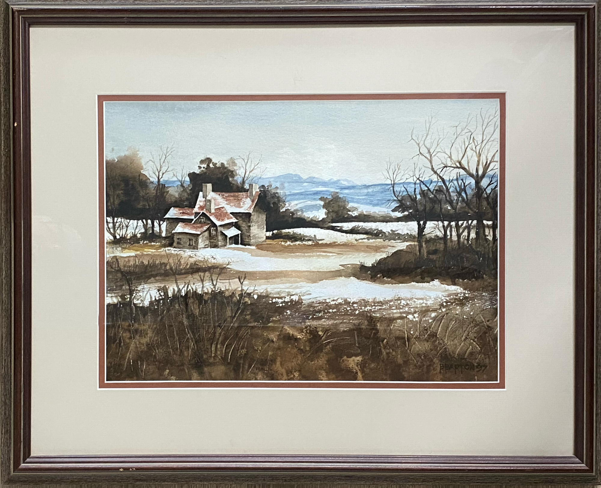 This 22” X 18” painting is a typical scene of a snowy winter village